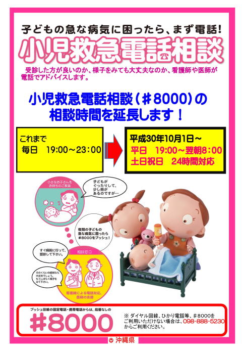 小児救急電話相談事業(♯8000)相談時間が延長になりました